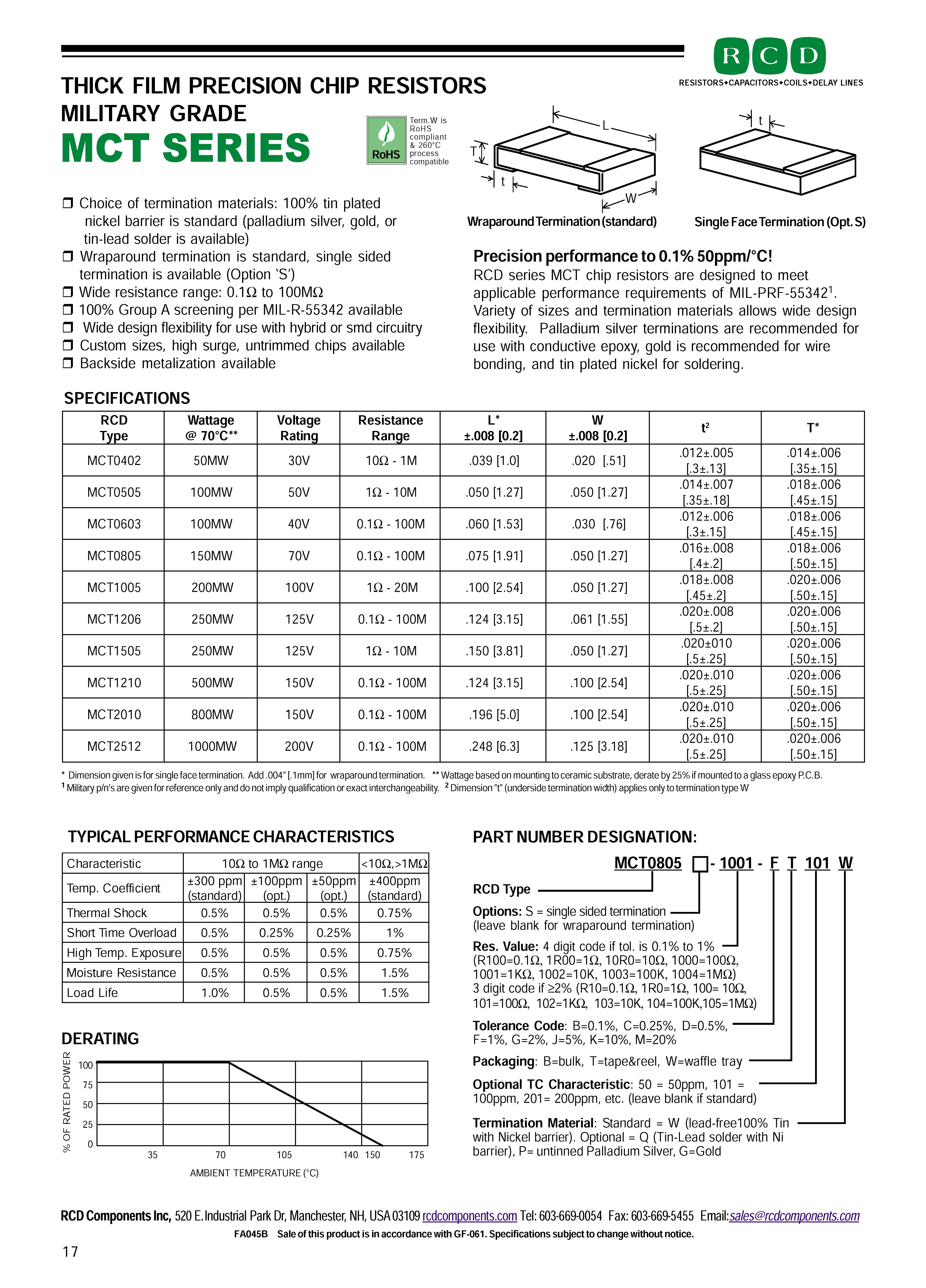 RCD军用级别MCT系列贴片电阻