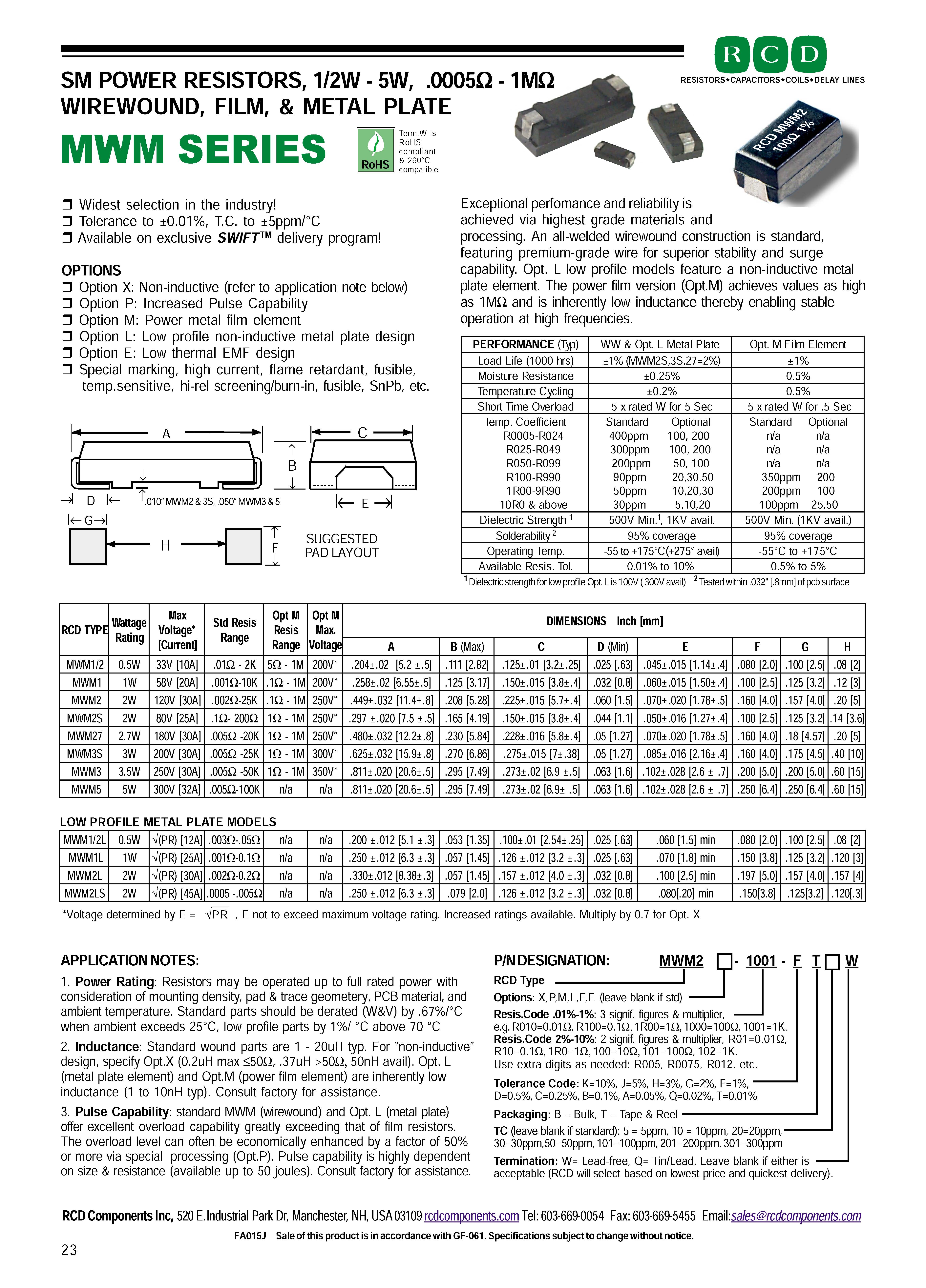 RCD MWM系列SM功率电阻