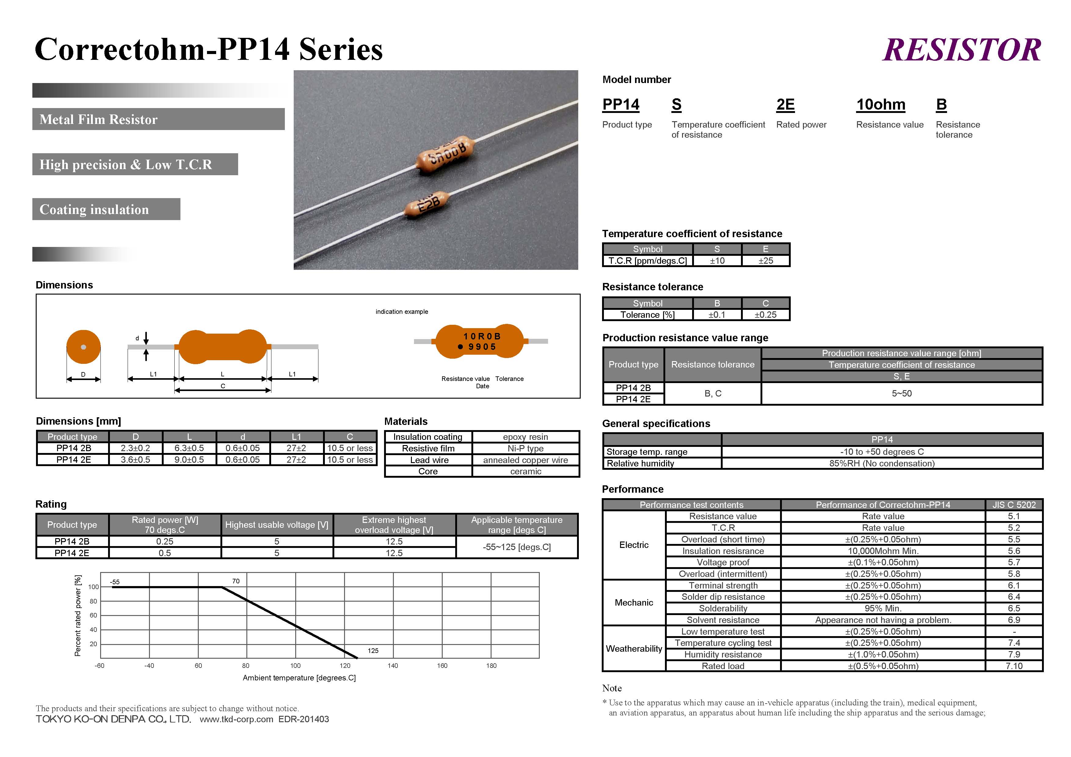 日本东京光音TKD PP14系列高精度低温漂金属膜电阻