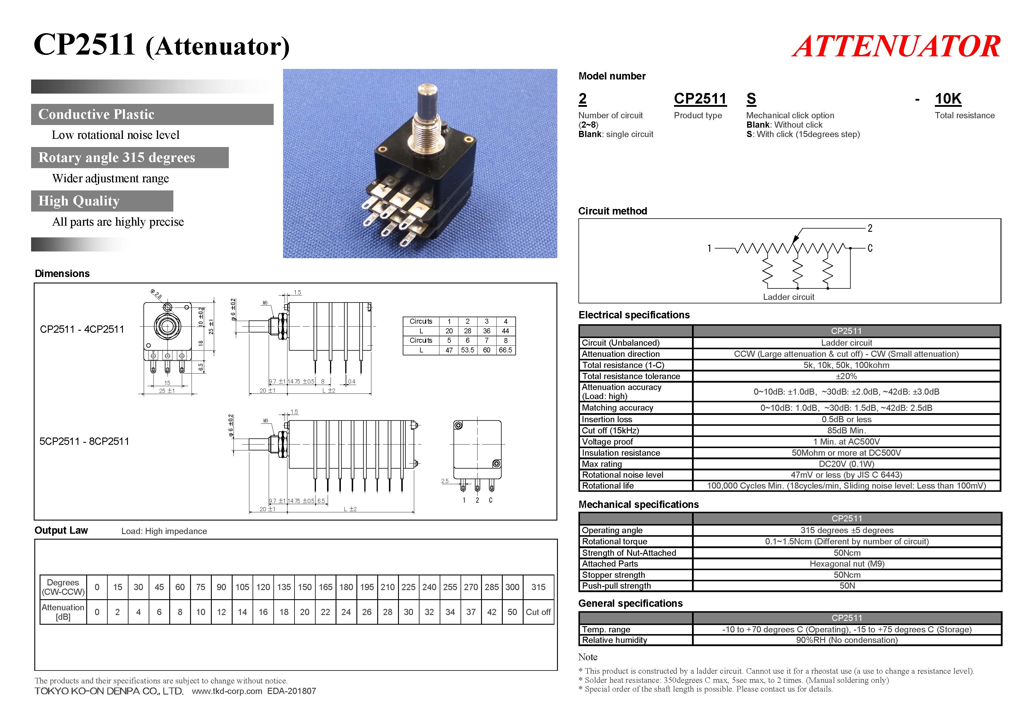 日本东京光音TKD CP2511系列电位器