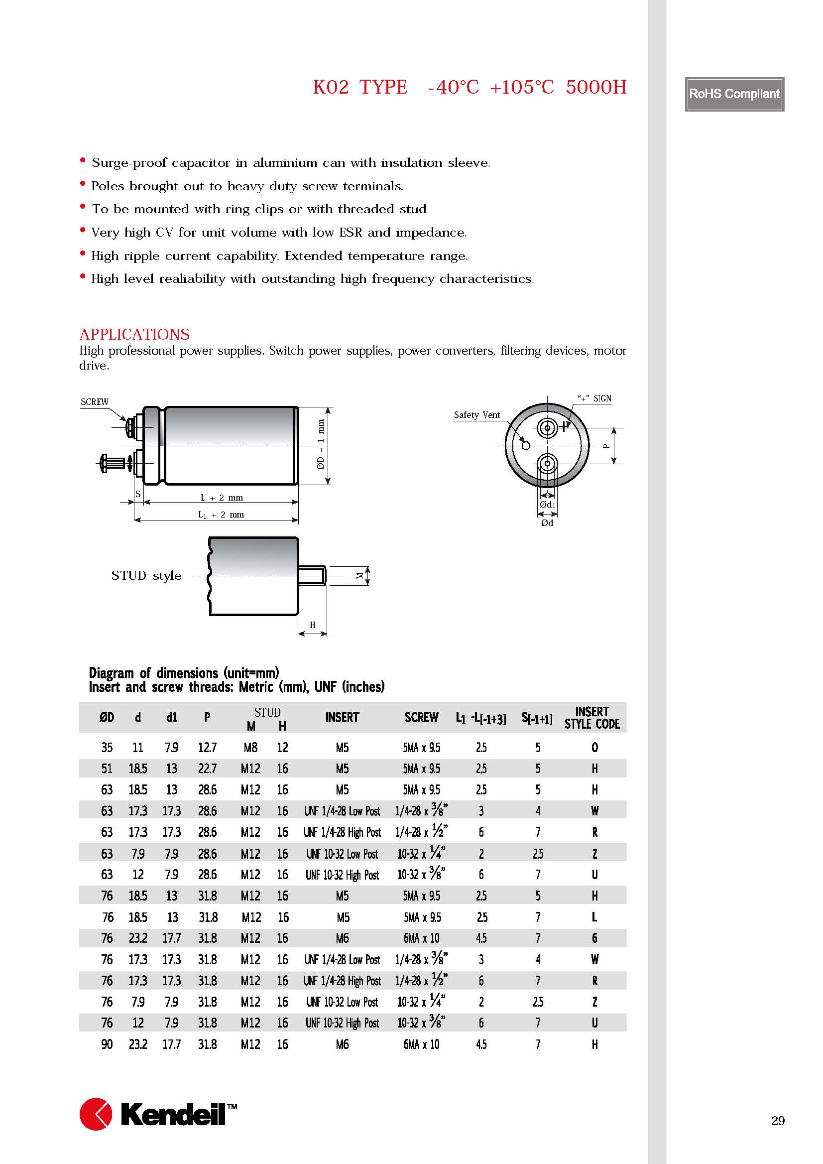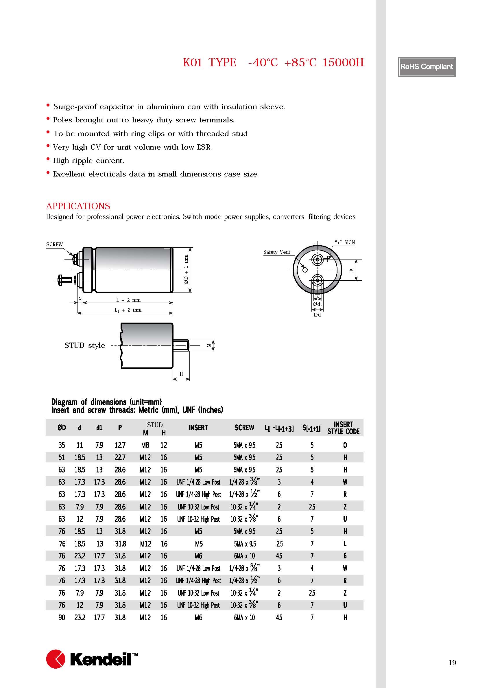 产品中心 >> 电容 >> Kendeil >> 螺栓铝电解电容