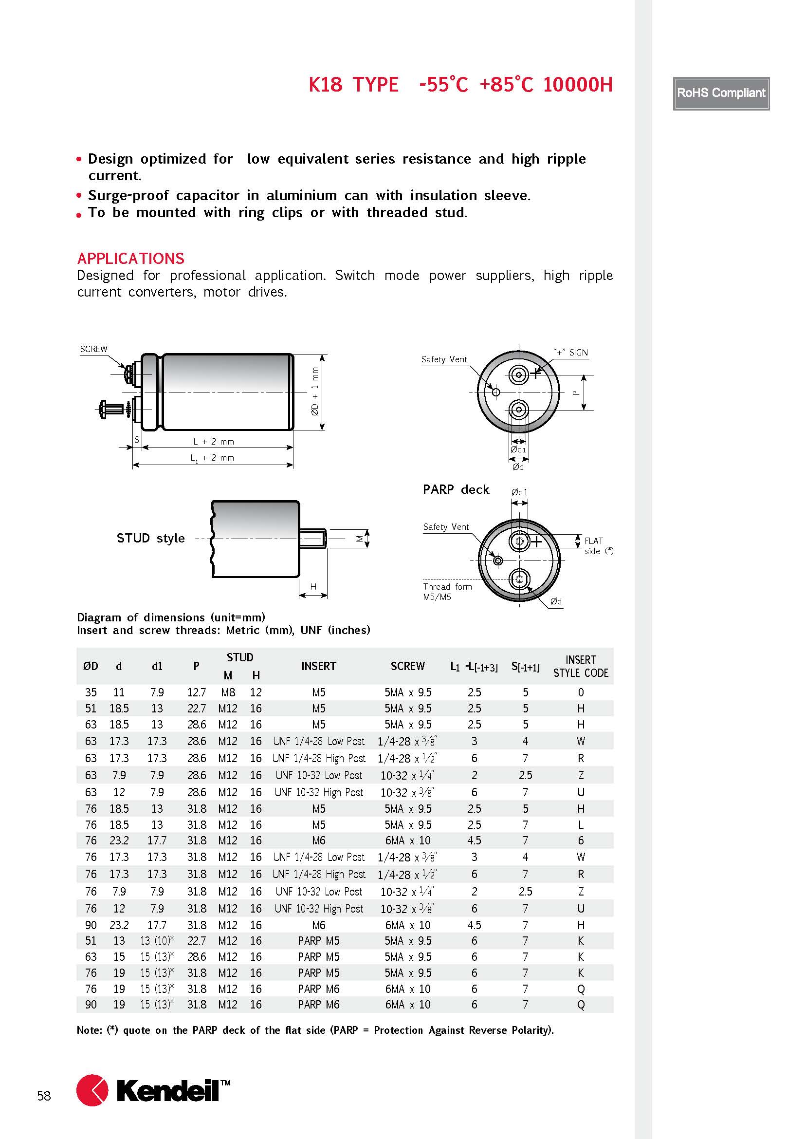 产品中心 >> 电容 >> Kendeil >> 螺栓铝电解电容