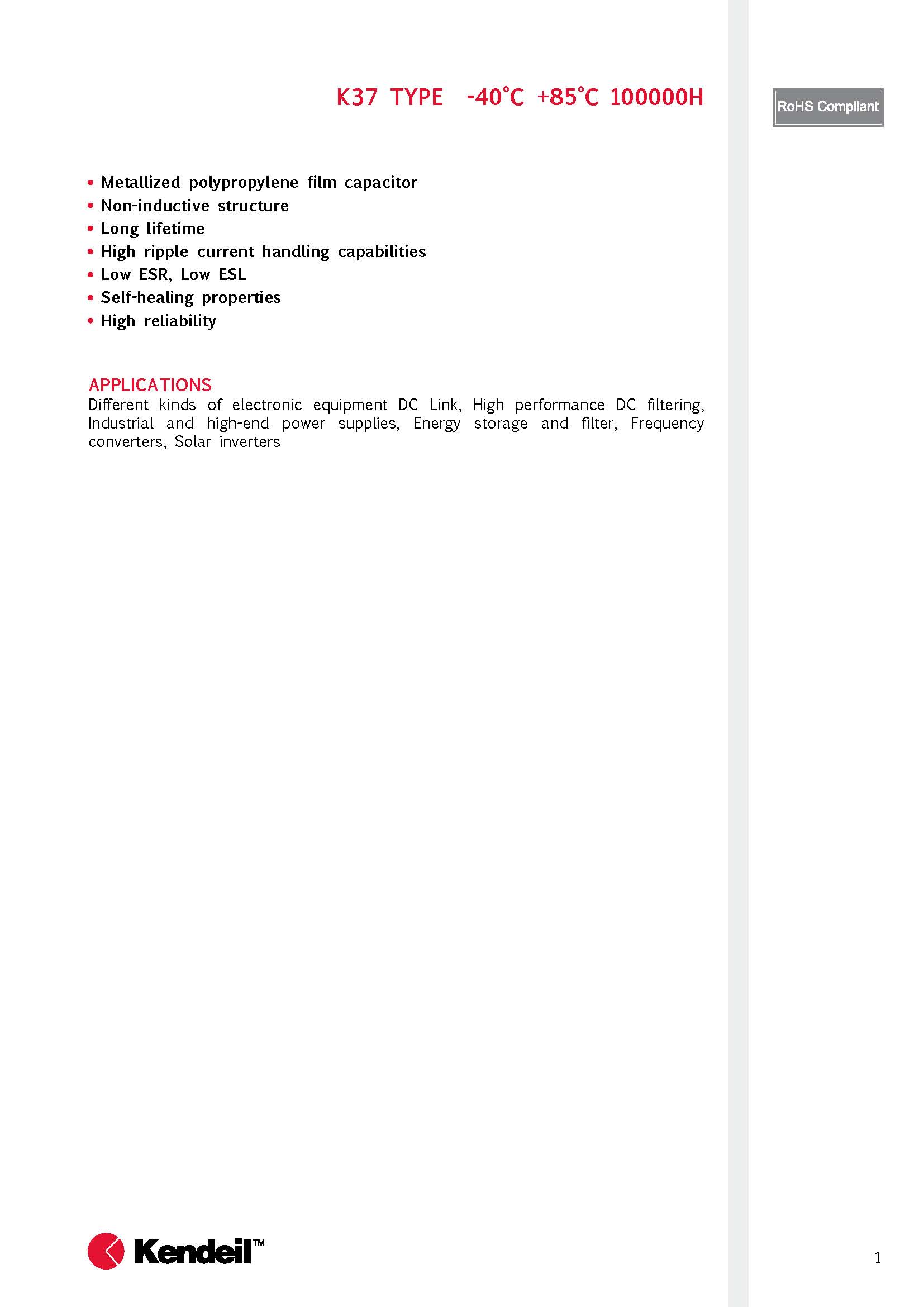 产品中心 >> 电容 >> Kendeil >> 薄膜电容