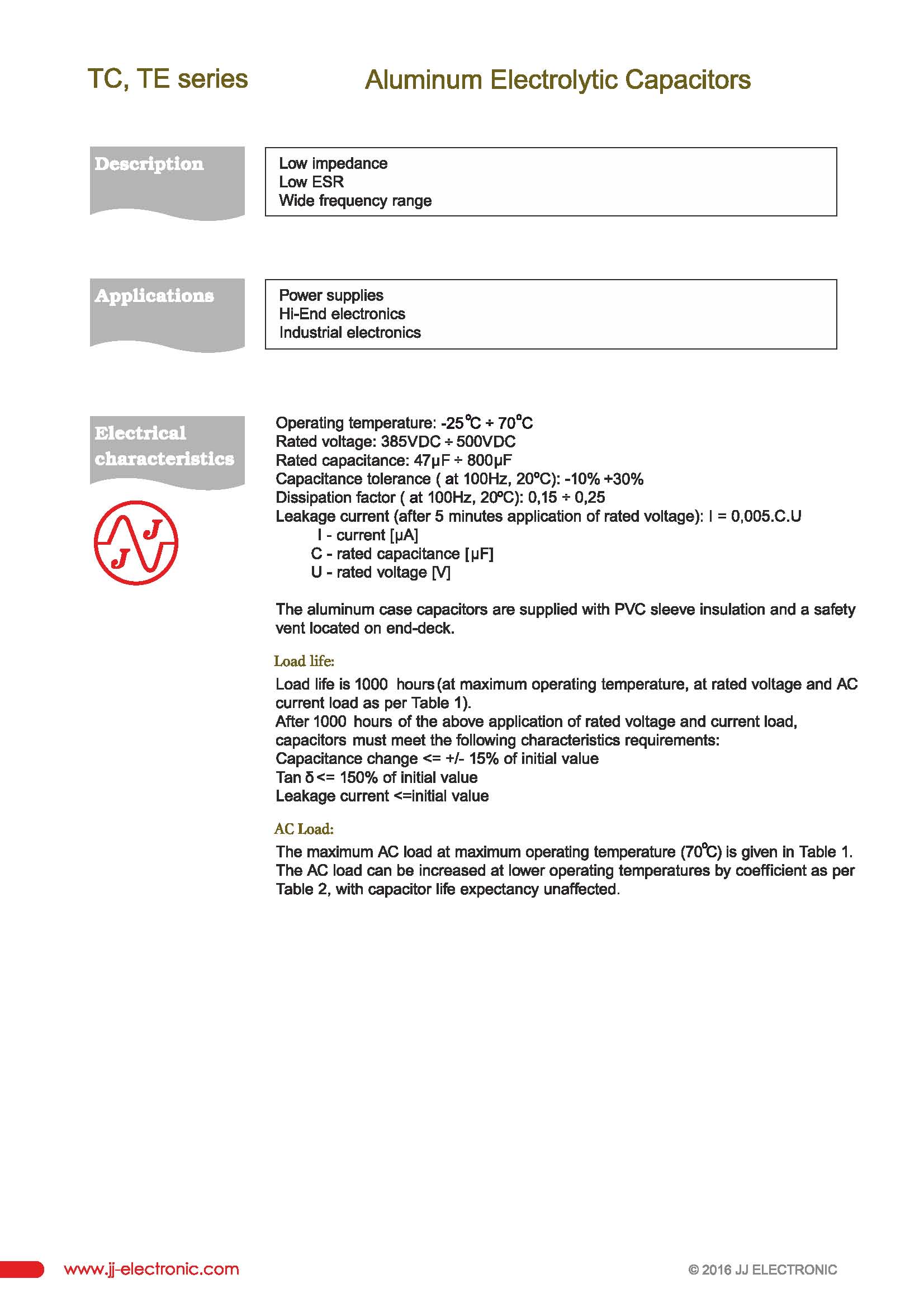 产品中心 >> 电容 >> JJ Electronic