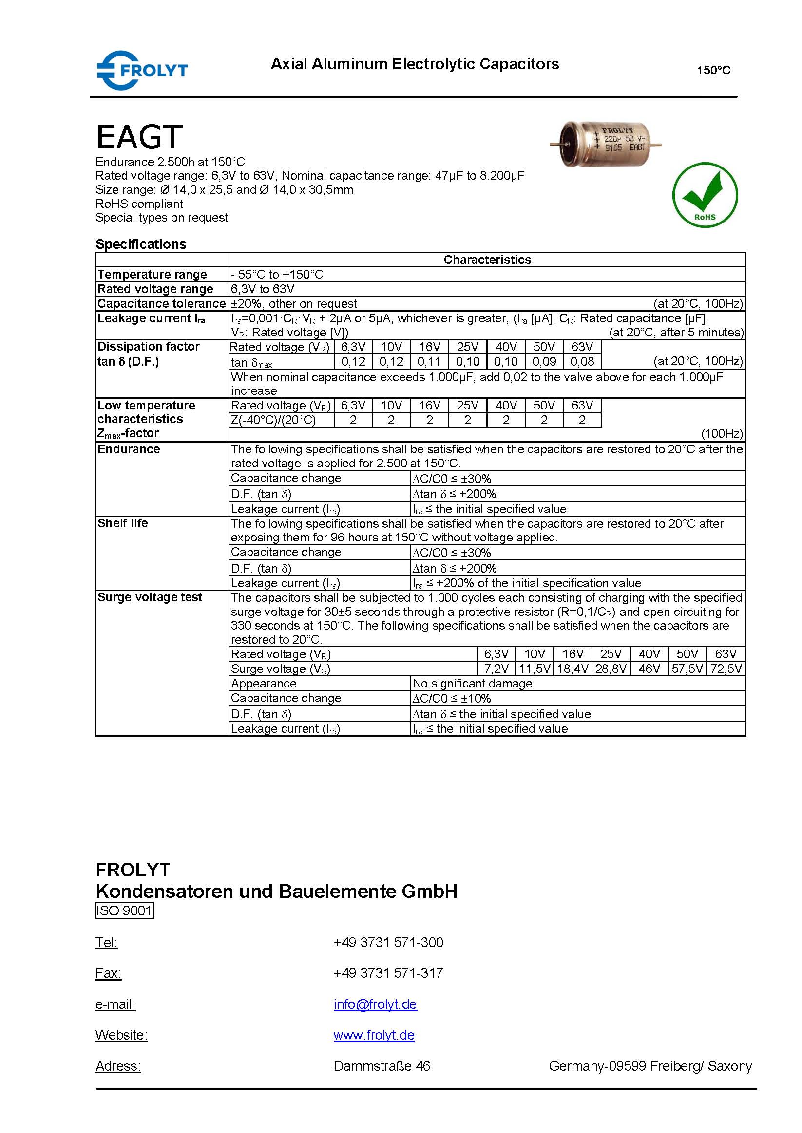 产品中心 >> 电容 >> Frolyt >> 轴向电解电容