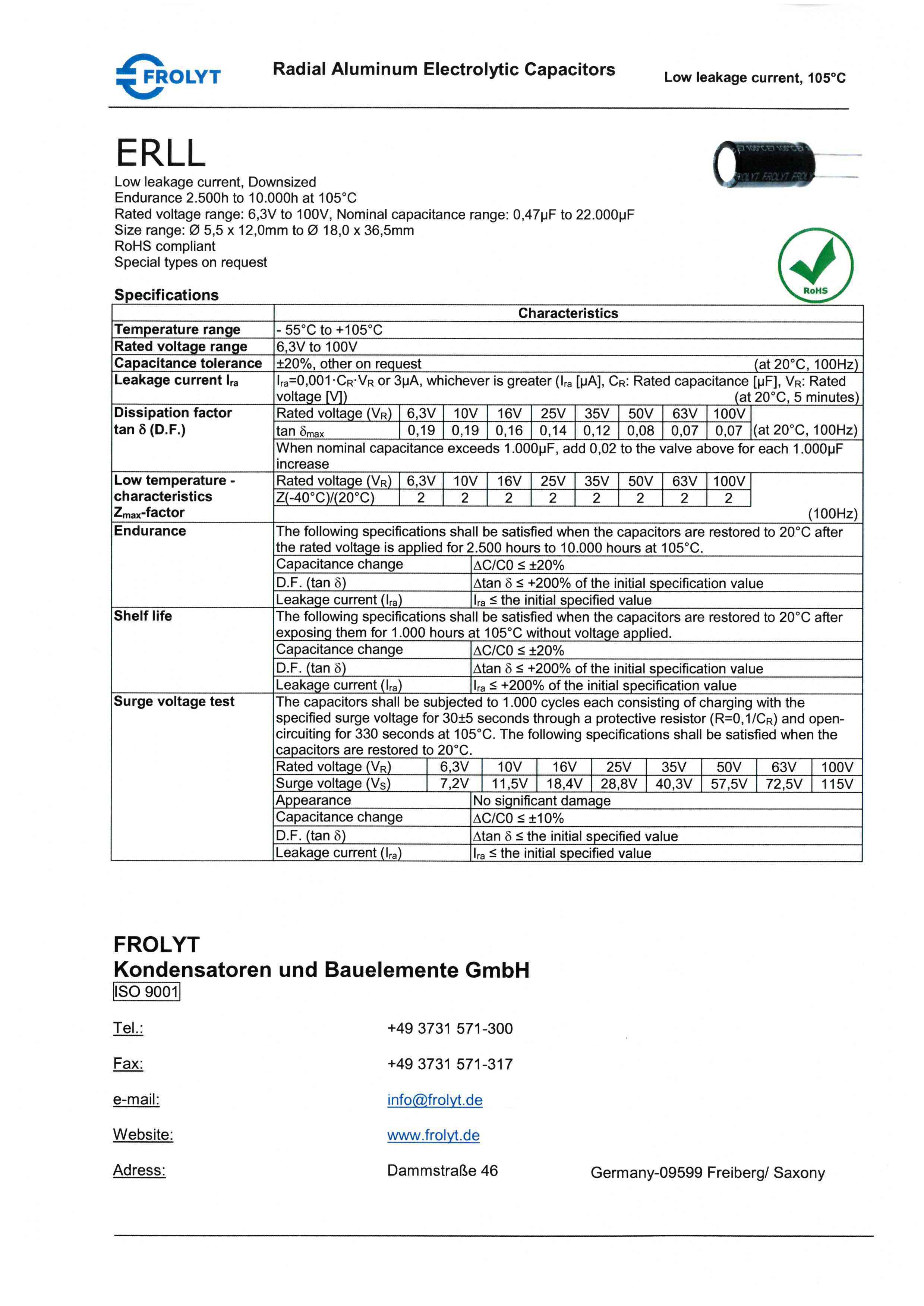 产品中心 >> 电容 >> Frolyt >> 径向电解电容
