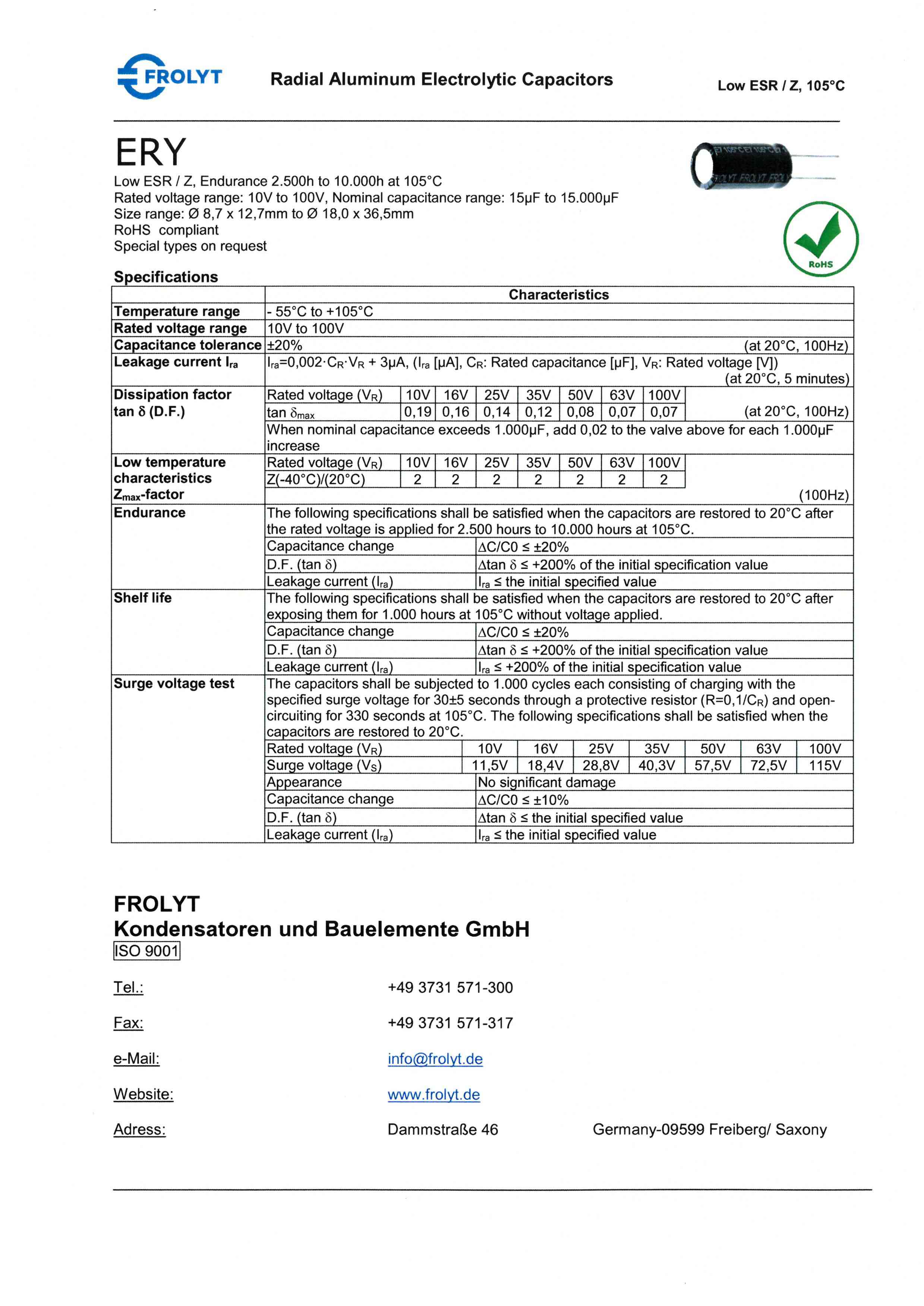 产品中心 >> 电容 >> Frolyt >> 径向电解电容