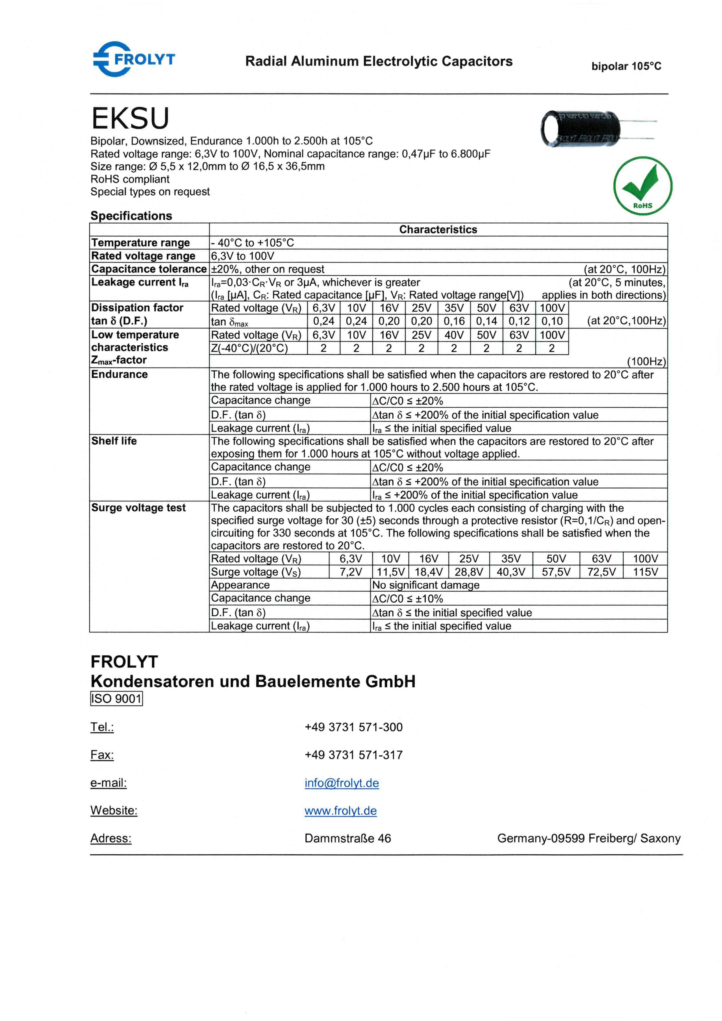 产品中心 >> 电容 >> Frolyt >> 径向电解电容