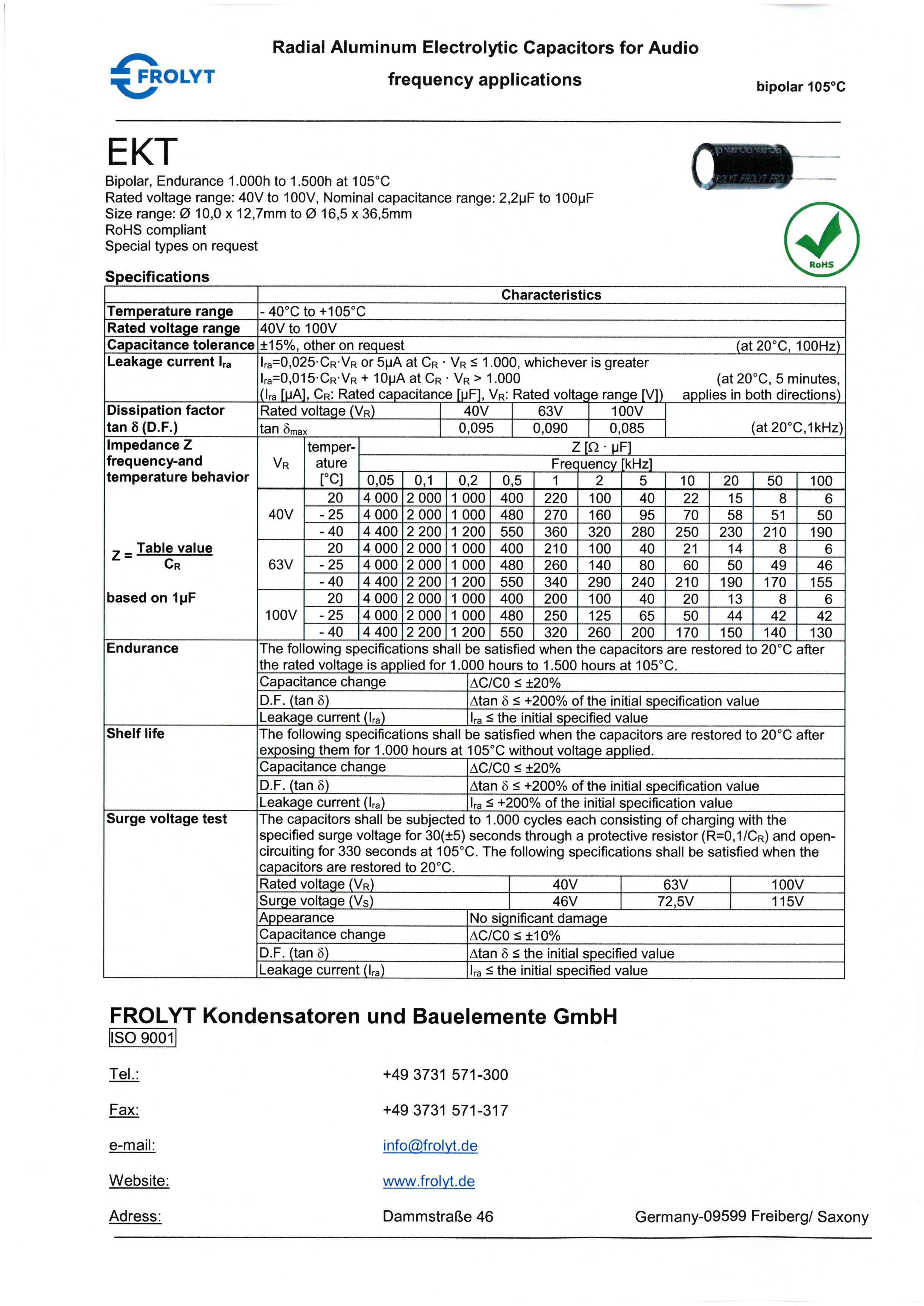 产品中心 >> 电容 >> Frolyt >> 径向电解电容