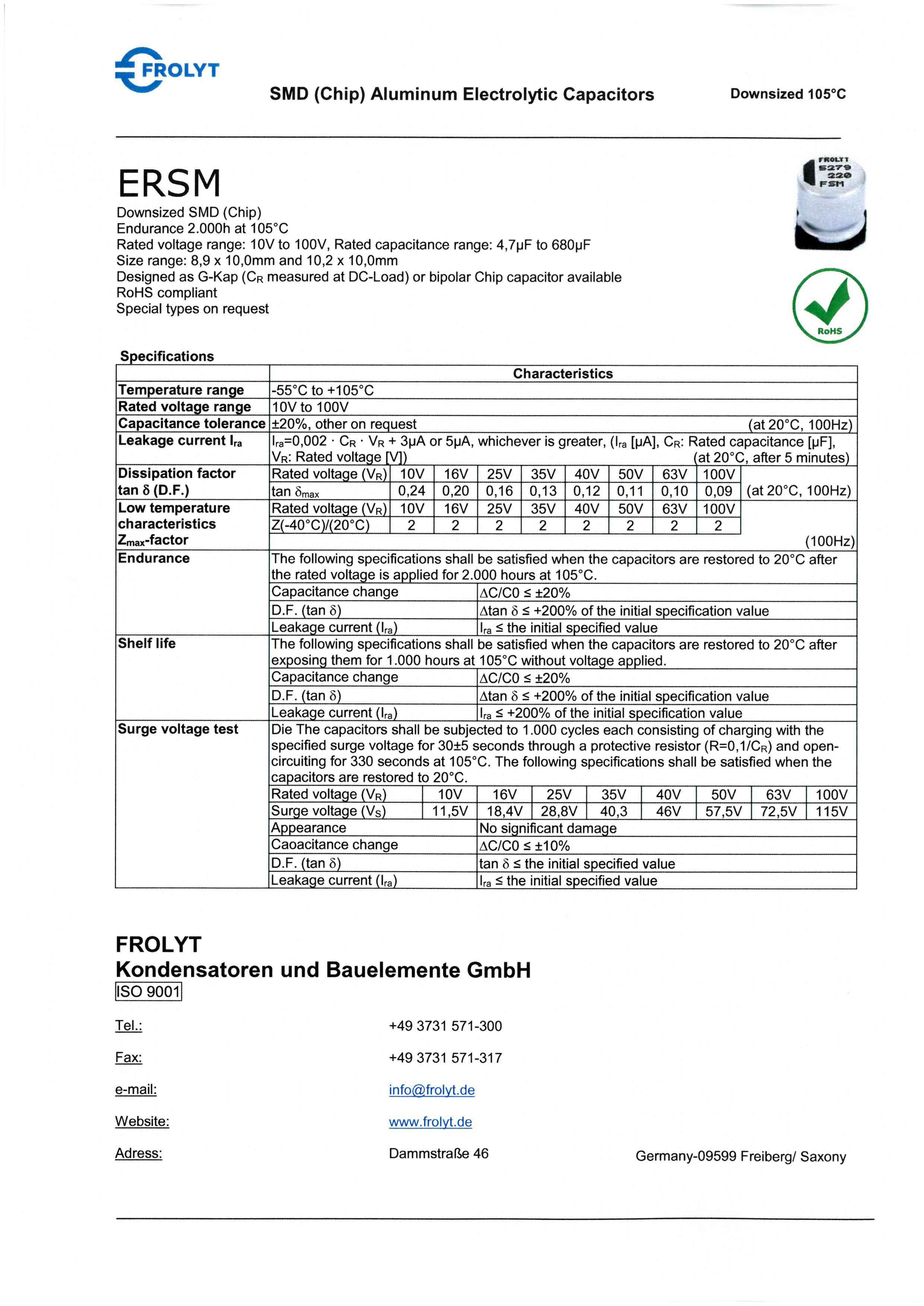 产品中心 >> 电容 >> Frolyt >> 贴片电解电容