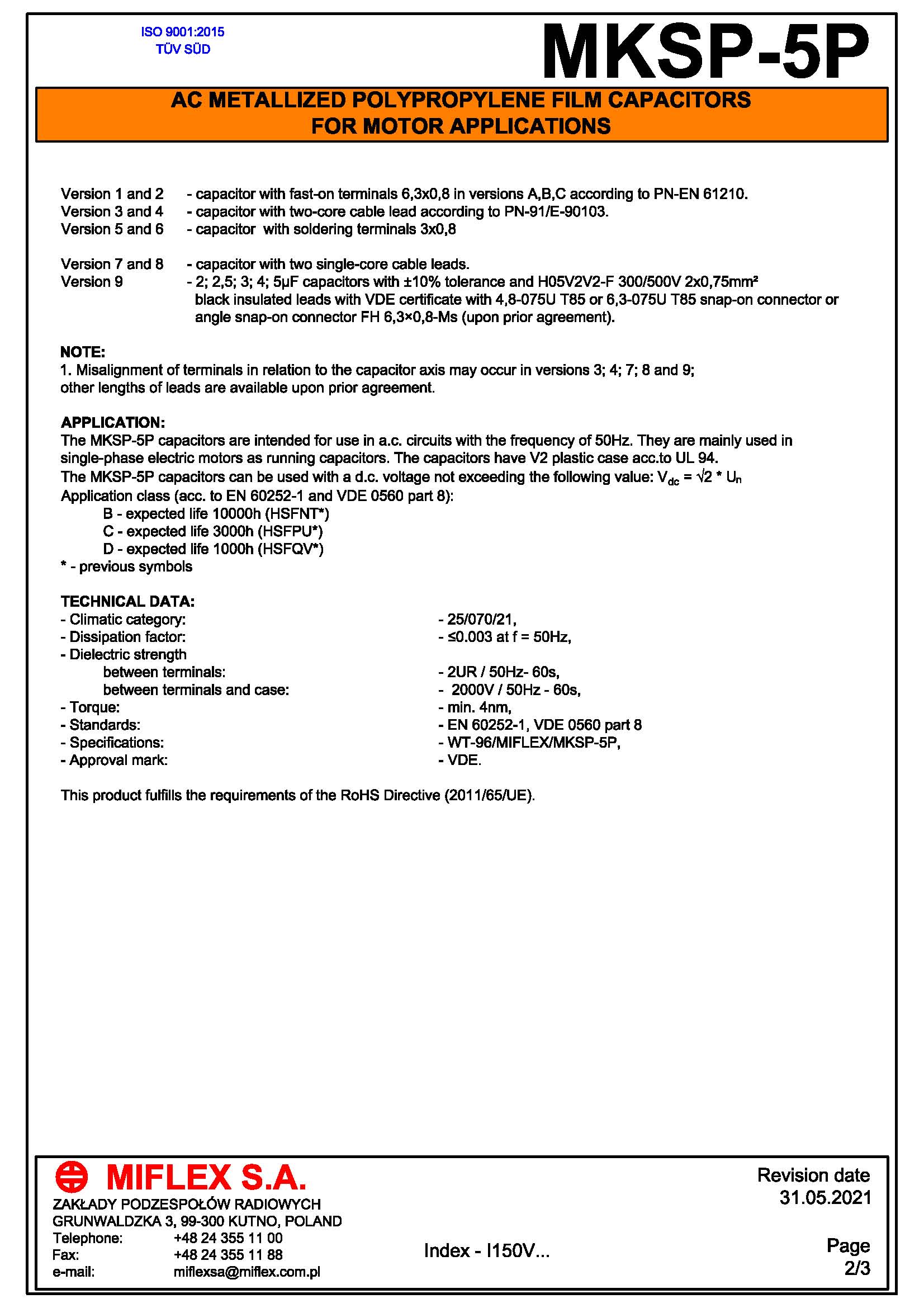 产品中心 >> 电容 >> MIFLEX >> 电机启动电容