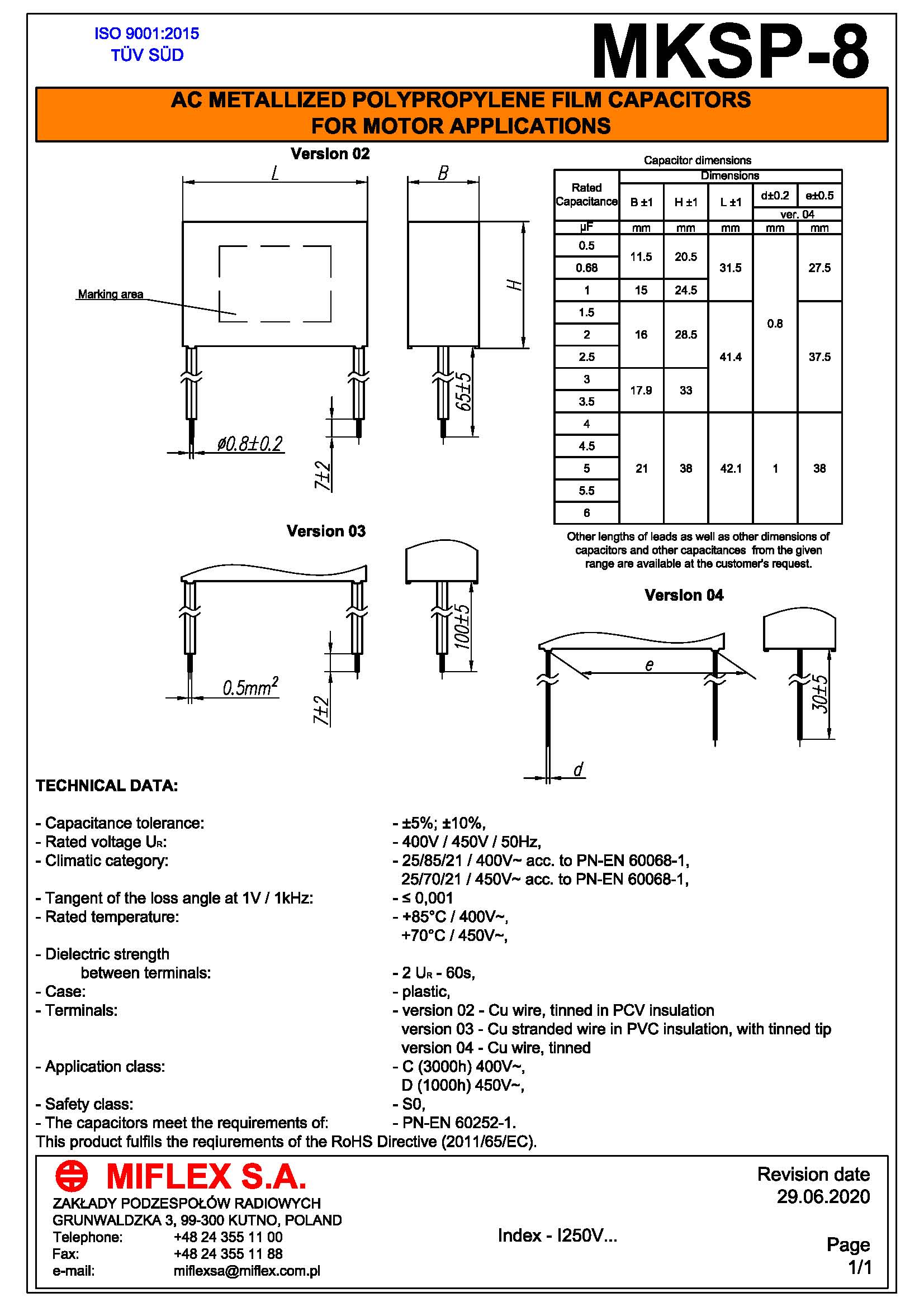 产品中心 >> 电容 >> MIFLEX >> 电机启动电容