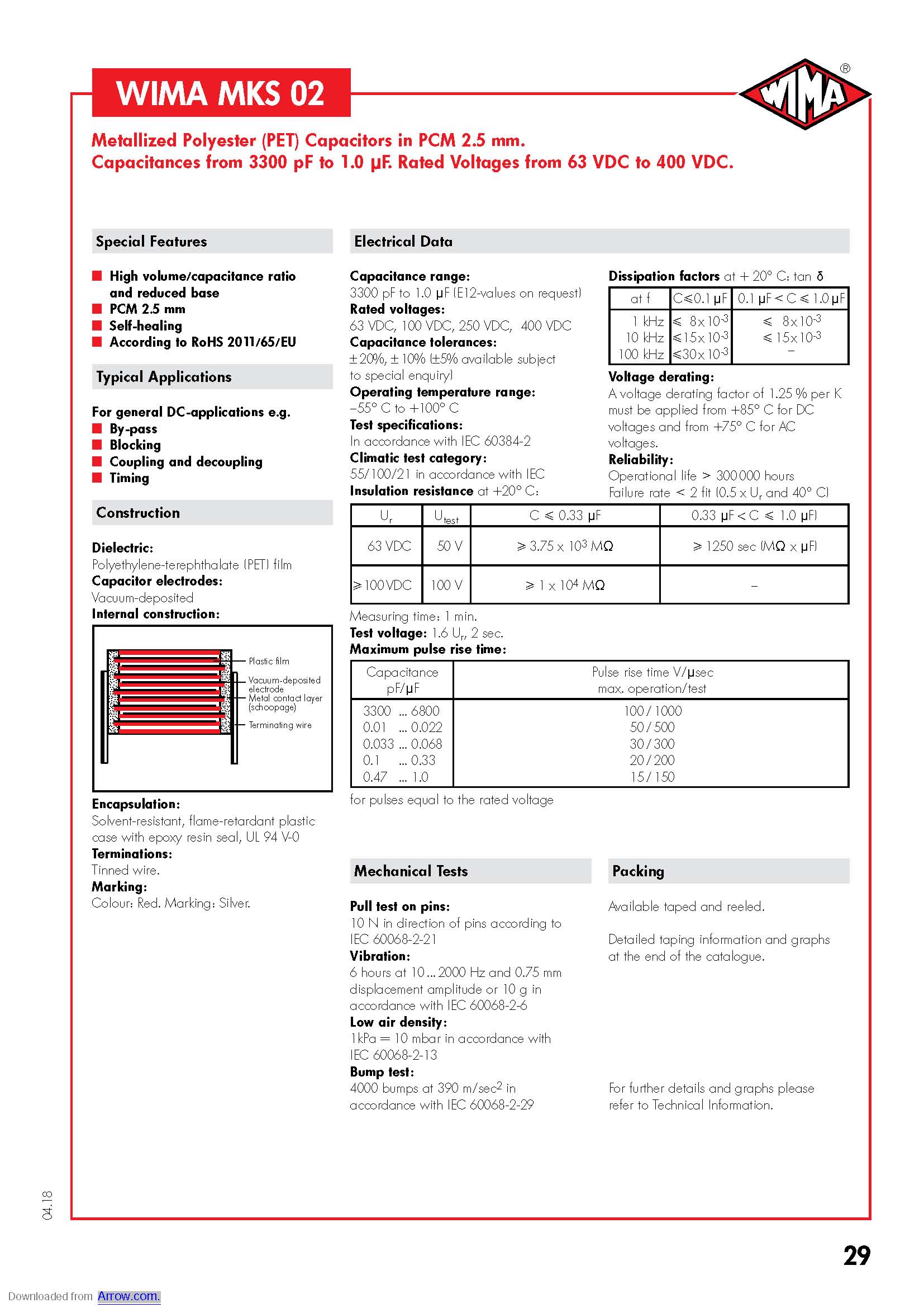 产品中心 >> 电容 >> WIMA >> 脚距小于2.5mm的电容