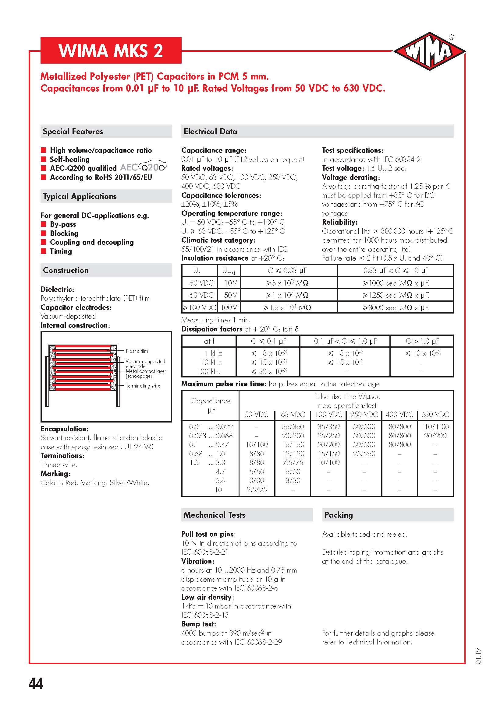 产品中心 >> 电容 >> WIMA >> 脚距为2.5-5mm的电容