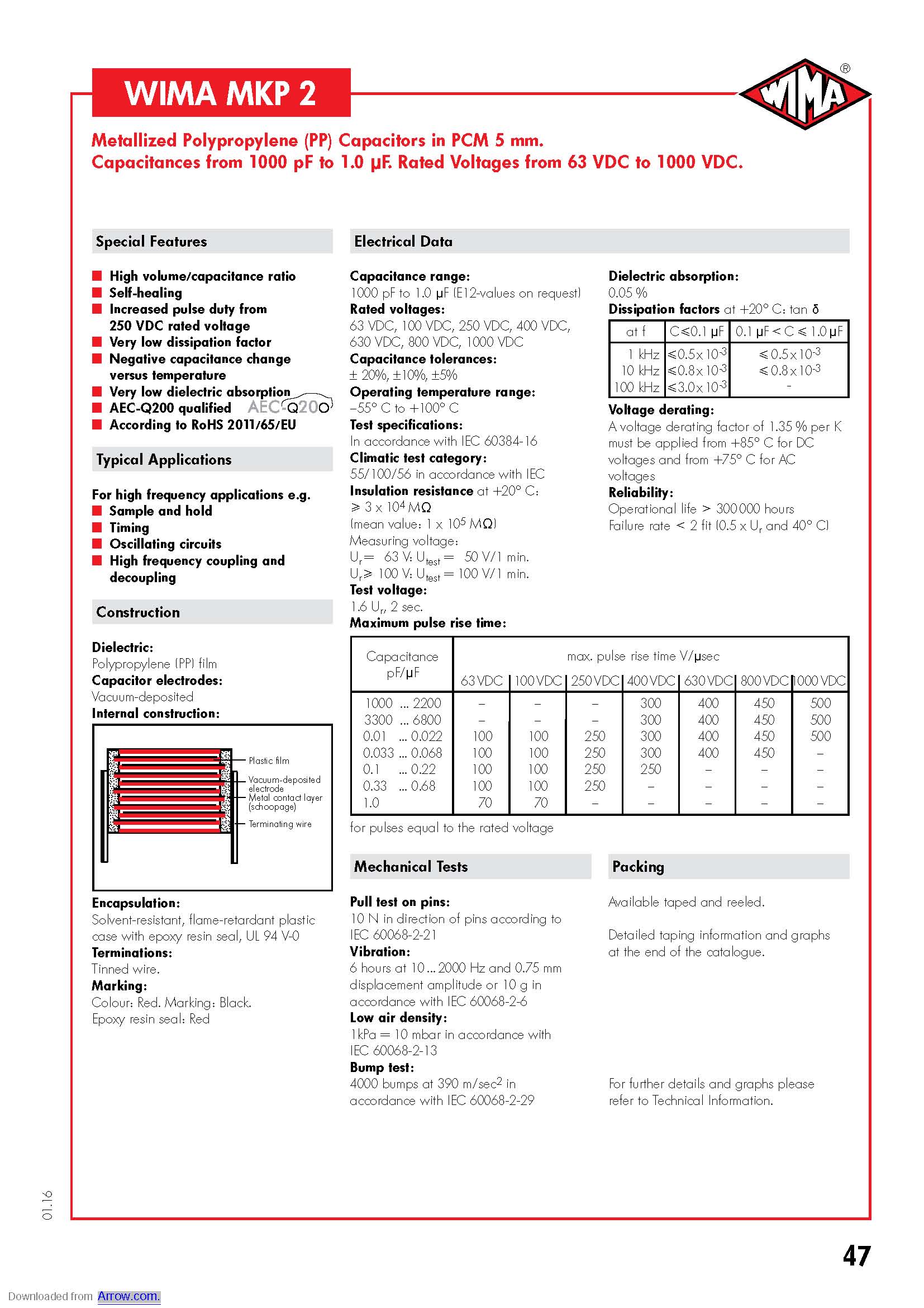产品中心 >> 电容 >> WIMA >> 脚距为2.5-5mm的电容
